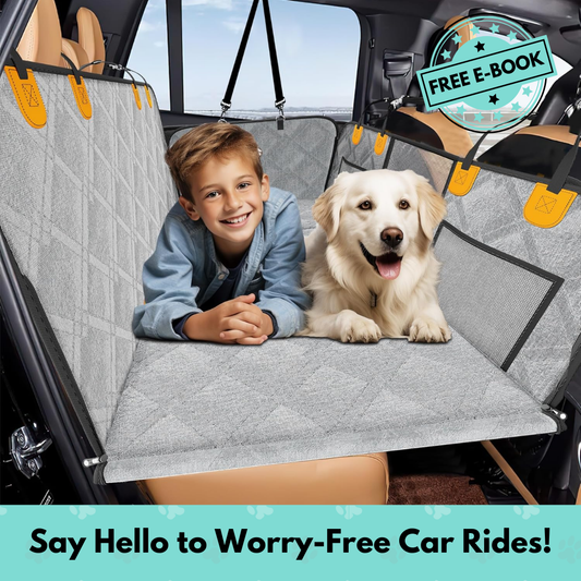 Protect your car from pet hair, dirt, and scratches with our waterproof, non-slip seat cover, designed for easy installation and your dog's safety. 🐾🔒 + FREE E-Book With Purchase!